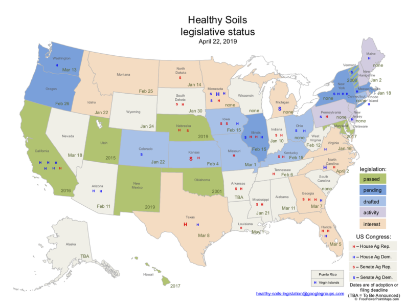 Figure 4. Map showing Heathy Soils legislation across the US (from Soil4climate.org, https://www.soil4climate.org/news/category/healthy-soils-legislation)